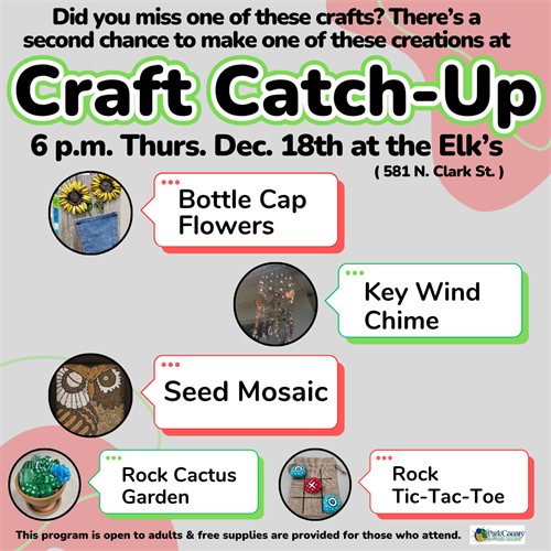There's a second chance to make one of the pictured creations at Craft Catch-Up, which is December's Adult Craft Night happening at 6 p.m. on Thursday, December 18th at the the Elk's!!