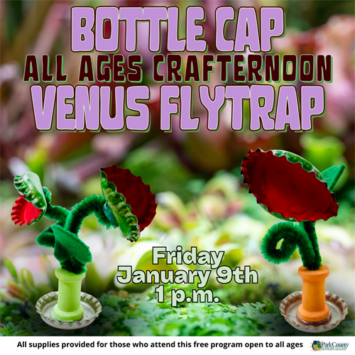 Join the Powell Library's All Ages Crafternoon on Friday, January 9th at 1 p.m. to craft a Venus Flytrap out of bottle caps, a wooden spool and pipe cleaners!