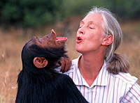 Jane Goodall enjoys a moment with one of her chimps.