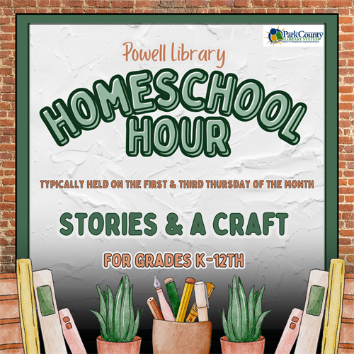 *** Homeschool Hour will typically be held on the first and third Thursday of each month. Some holiday closures or other factors may impact this schedule. Please call the library at (307) 754-8828 with any questions regarding future Homeschool Hour dates.
