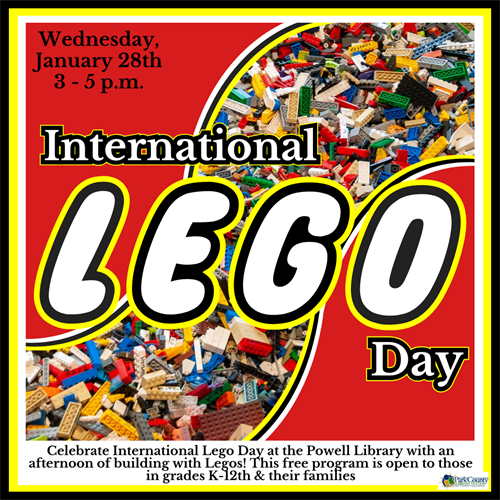 Celebrate International Lego Day at the Powell Library with an afternoon of building with Legos!!