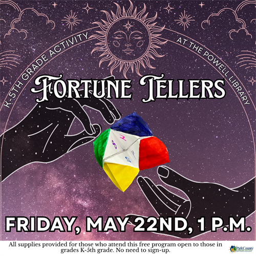 Fortune favors those bold enough to learn how to make an old-fashioned fortune teller at the Powell Library on Friday, May 22nd at 1 p.m.!
